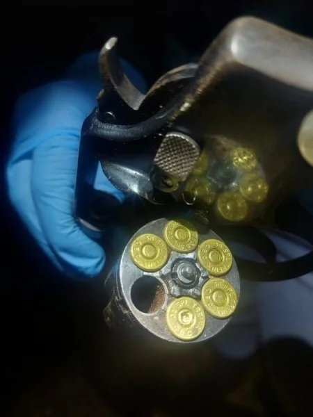 Os militares encontraram um revólver Cal .38 nas proximidades e dentro do veículo um aparelho com antenas parecendo ser um "chupa cabra", utilizado para roubar dados de cartões em caixas eletrônicos.