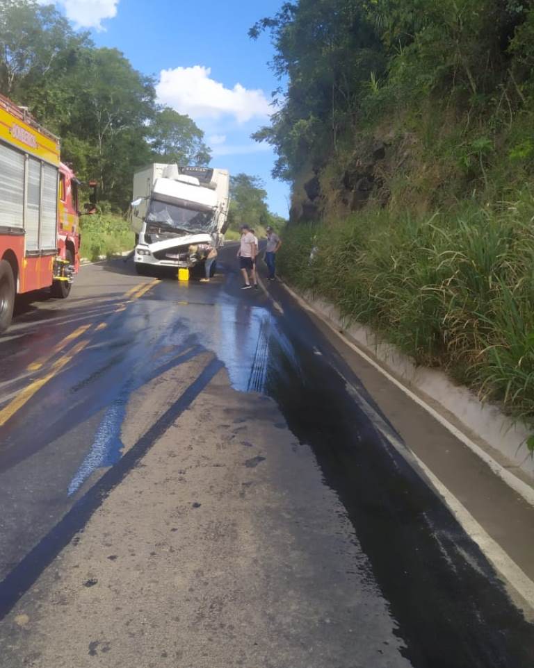 Um jovem de 22 anos estava na direção e havia ainda uma passageira, de 36 anos, dentro da cabine. O Corpo de Bombeiros foi acionado para atender a ocorrência por volta das 15h30. Segundo a equipe, as duas vítimas foram socorridas com ferimentos leves.