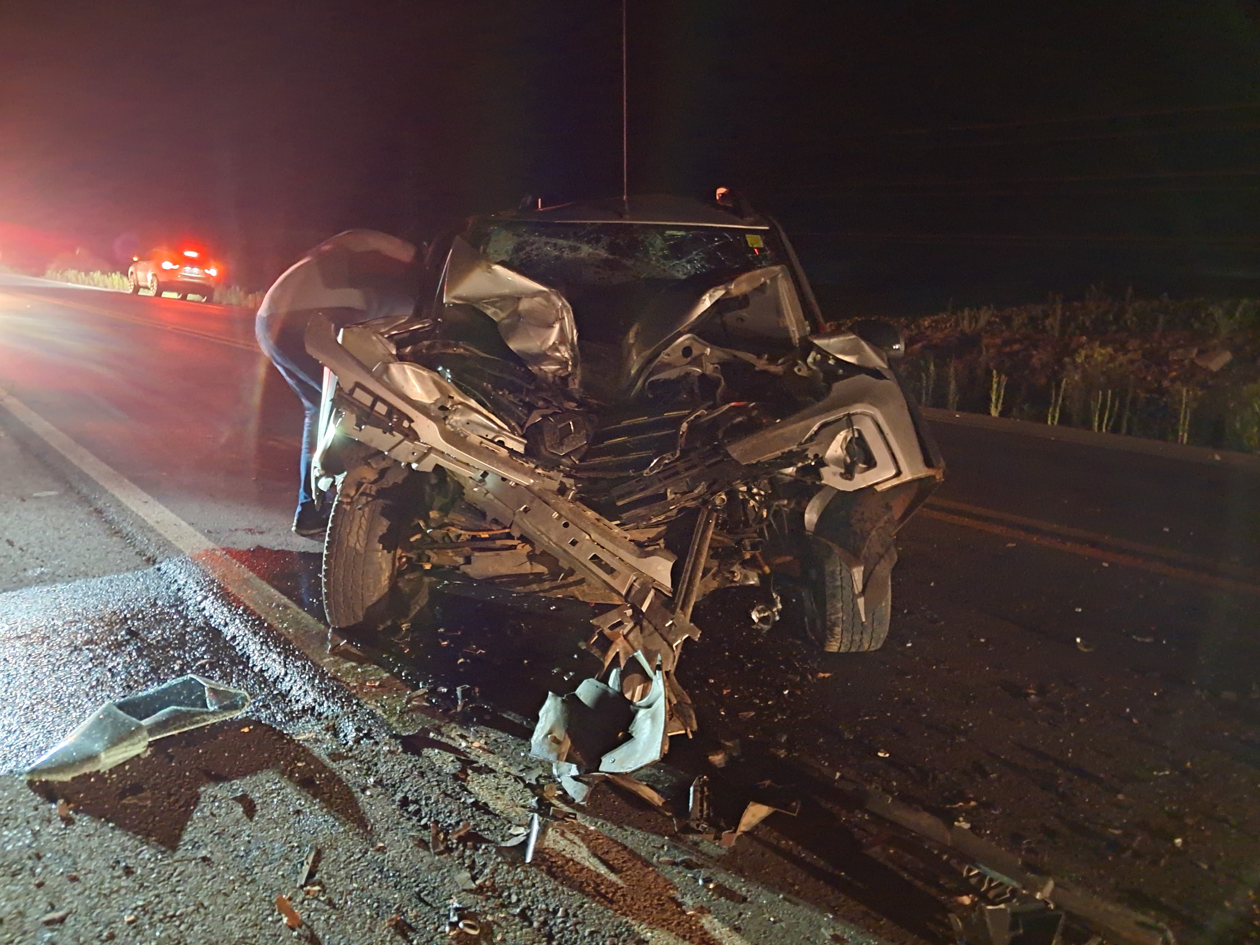 Na carreta, estava apenas o condutor, que não sofreu ferimentos e recusou atendimento. A Polícia Rodoviária Federal (PRF) foi acionada e esteve no local para os procedimentos necessários. As causas do acidente não foram informadas, no entanto, a picape ficou bastante danificada.