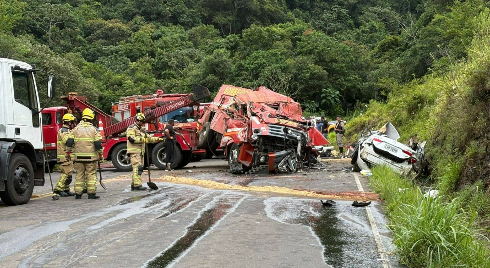De acordo com informações do Corpo de Bombeiros, entre as vítimas estão dois socorristas e três ocupantes do veículo de passeio. Os bombeiros foram identificados como Juliano Baigorra Ribeiro, de 38 anos, e Audrei Alves Camargo, de 32 anos.