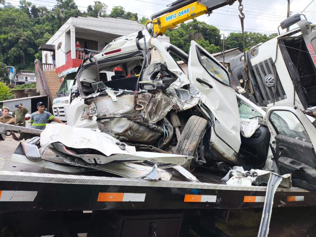 Um grave acidente provocado pela falha na redução de marcha de um caminhão deixou um casal de idosos em estado crítico na manhã desta quinta-feira (13), em Herval d’Oeste. O veículo deles foi esmagado após o caminhão, carregado com aves, perder o controle na descida e tombar sobre o Fiat Mobi.