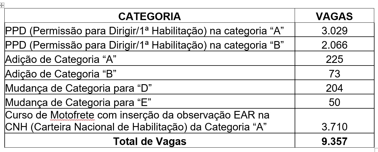As vagas são ofertadas nos municípios onde os Centros de Formação de Condutores (autoescolas), médicos e psicólogos são parceiros do Programa CNH Emprego na Pista, assim como demais entidades que podem ministrar os cursos.