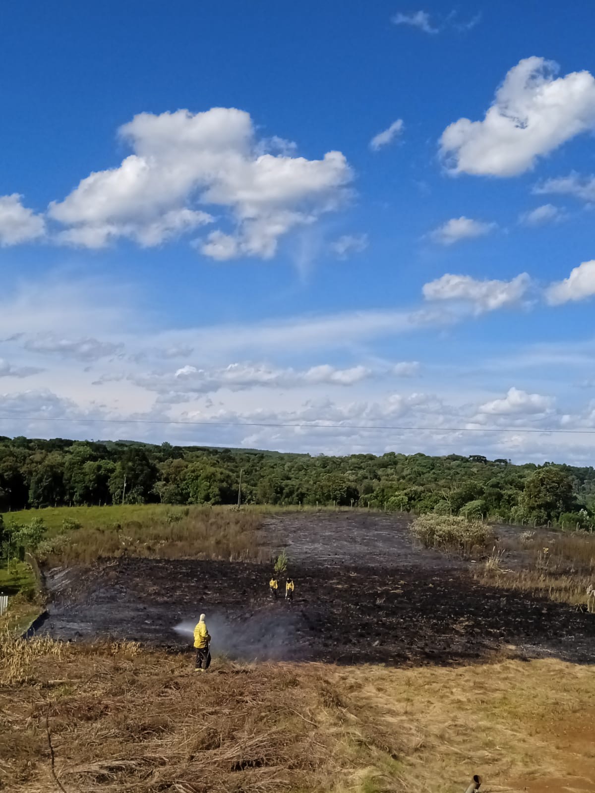 A segunda ocorrência foi registrada às 15h21, na Rua Acy Henrique Schauffier, no bairro São Francisco, em Catanduvas. O incêndio atingiu vegetação rasteira em um terreno baldio. Quando os bombeiros chegaram ao local, grande parte da área já havia sido consumida pelas chamas, restando apenas pequenos focos, que foram extintos com o uso de bombas costais.