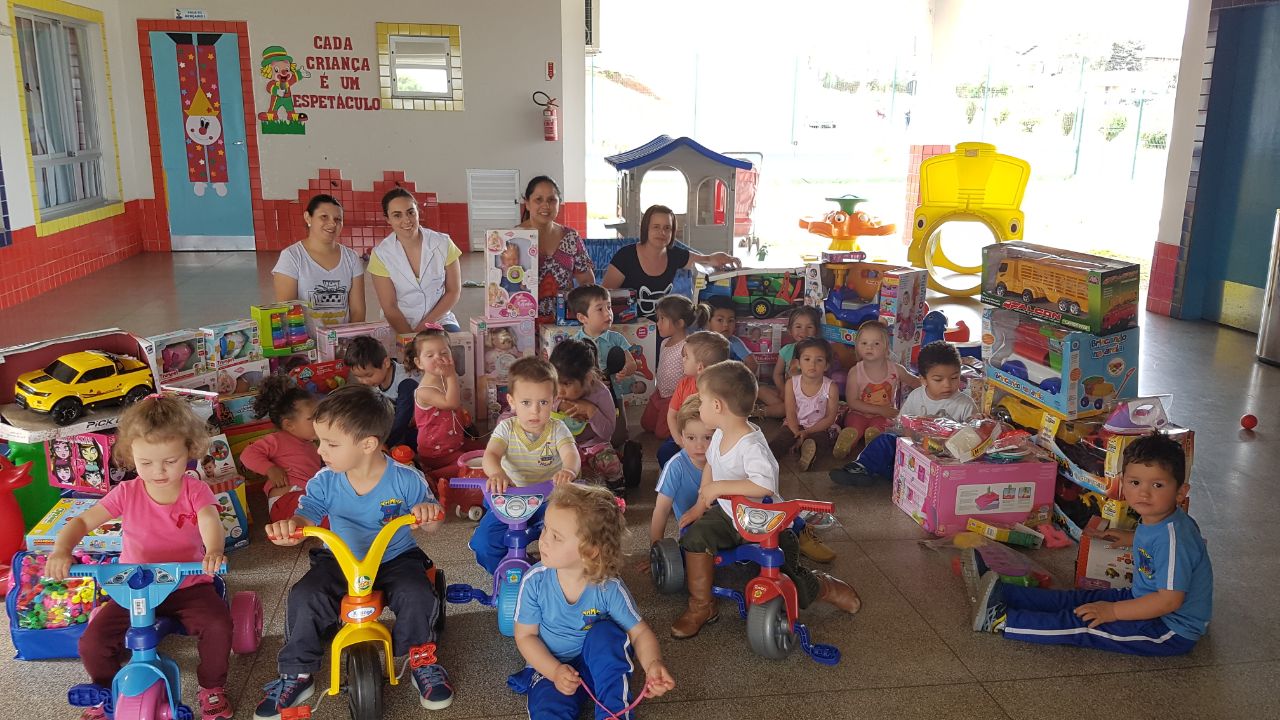 Com o apoio dos pais a direção fez a compra dos brinquedos beneficiando todas as crianças com brinquedos adequados a cada faixa etária.