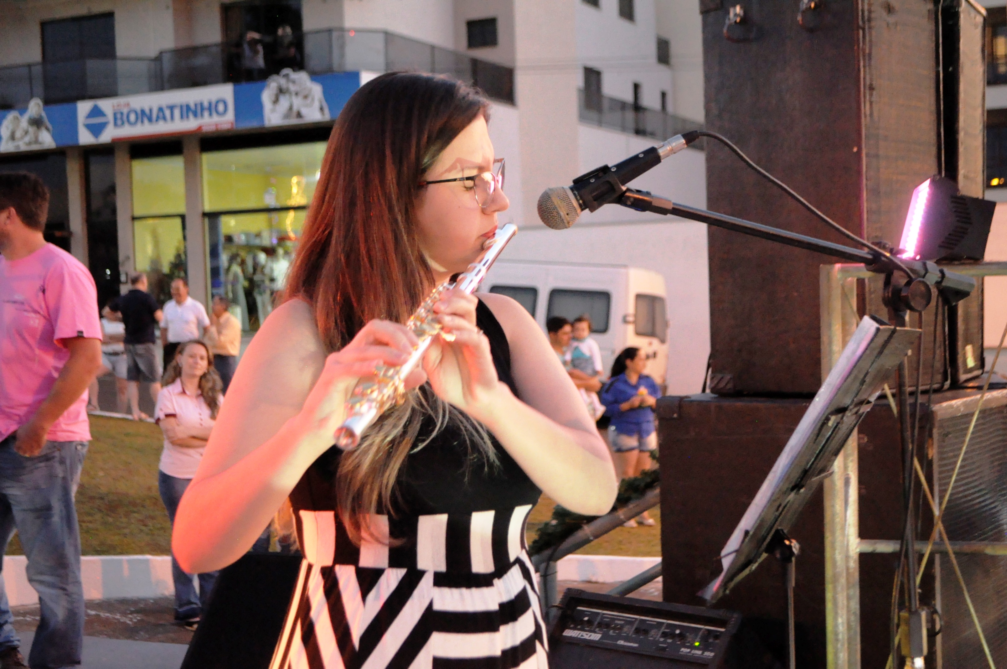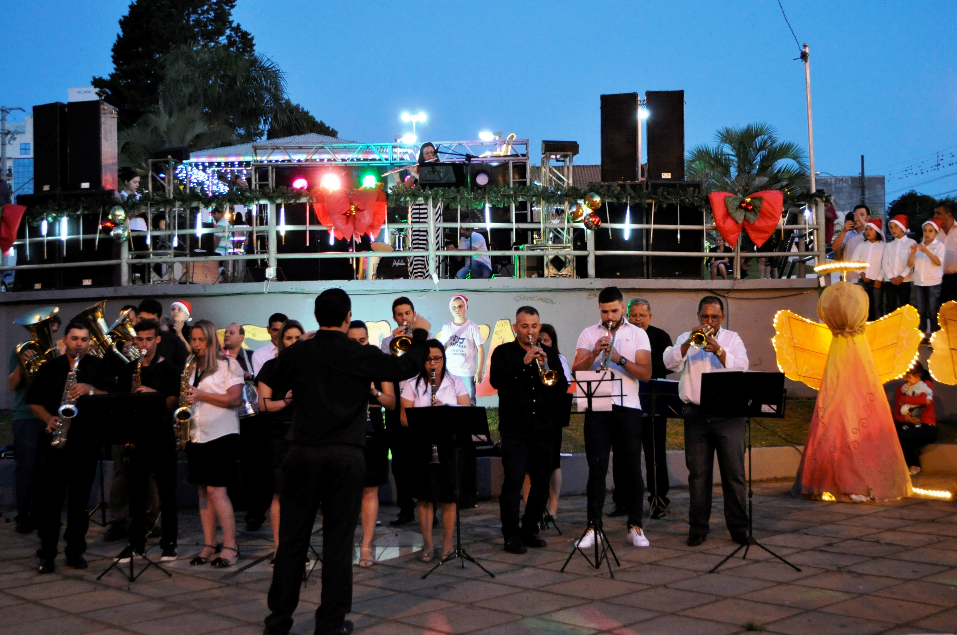 Ao passo que a população chegava à praça o céu escurecia e todos aguardavam o brilhar das luzes natalinas.