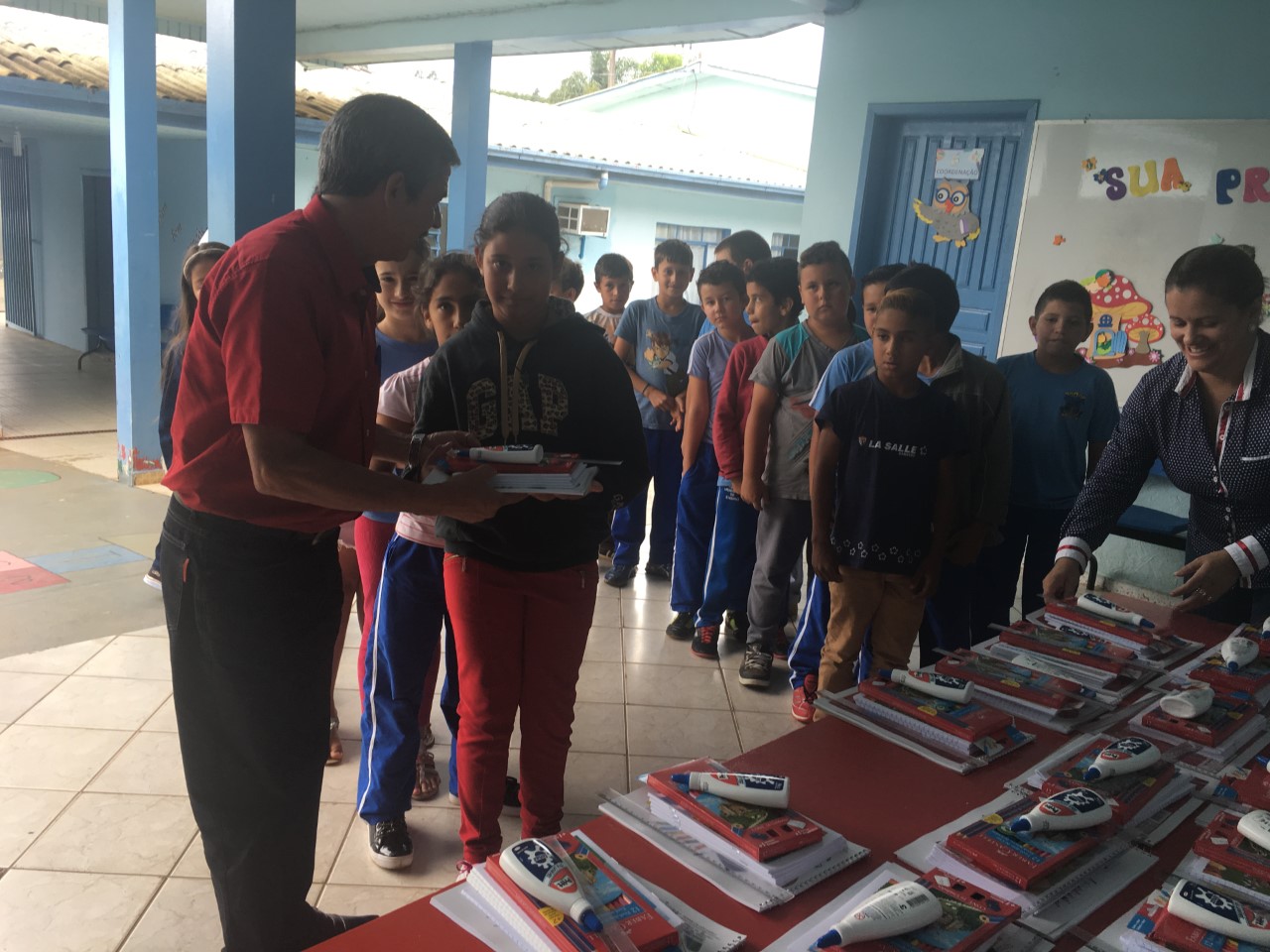 Segundo a Secretária de Educação Elenir Chinato, cerca de 1500 estudantes foram contemplados. Os professores, também receberam materiais escolares para dinamizar seus trabalhos pedagógicos. A entrega foi feita em cada uma das três Escolas Municipias de Educação Básica Augustinho Marcon, Alfredo Gomes e Professor Alexandre Viltoldo Czech.